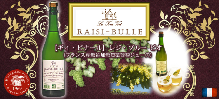 - 炭酸入り無農薬ぶどうジュース レジ・ブルー ビオ(RAISI-BULLE BIO) グラス(ビン) 1ケース(750ml×6本) [フランス産]